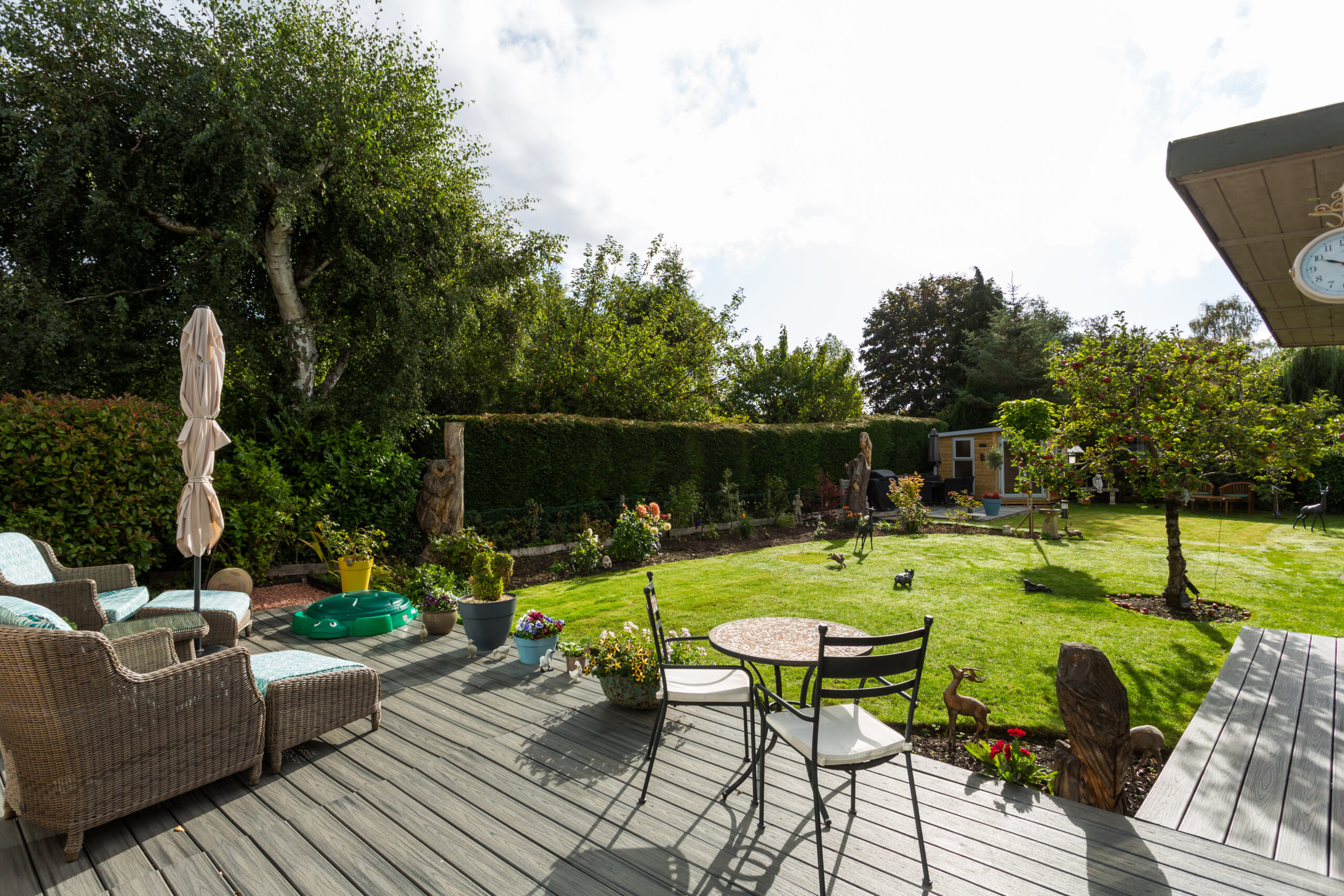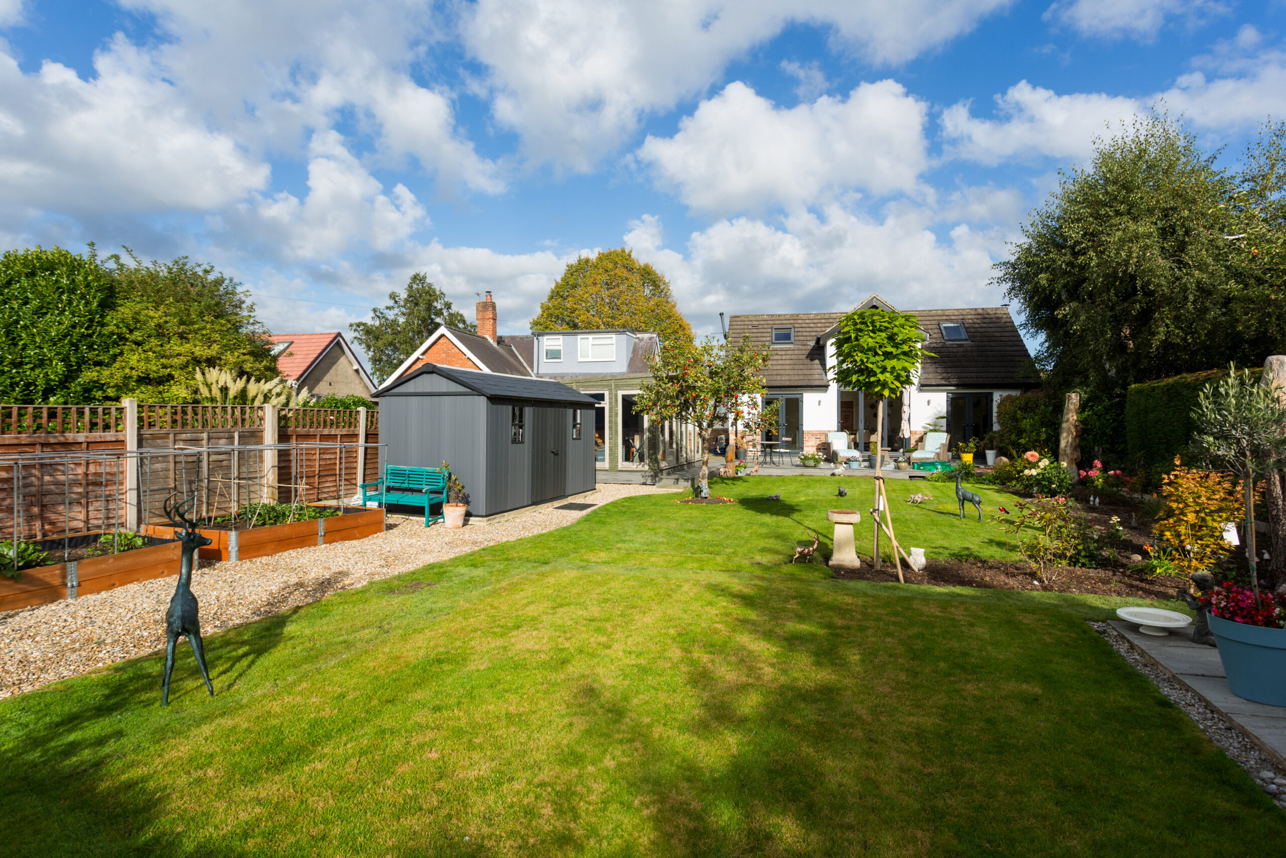 The rear can be accessed via a secure gate to a lovely garden with a perfect south westerly aspect to enjoy the sun throughout the day and into the early evening. There is a raised decking area offering seating to enjoy the sunny position. The majority of the gardens is laid to lawn with fruit trees and planted borders and there are raised beds for growing vegetables as well as a greenhouse. In addition there is a exceptional timber built workshop, secure storage shed and a timber built garden room which could also be used as a home office.