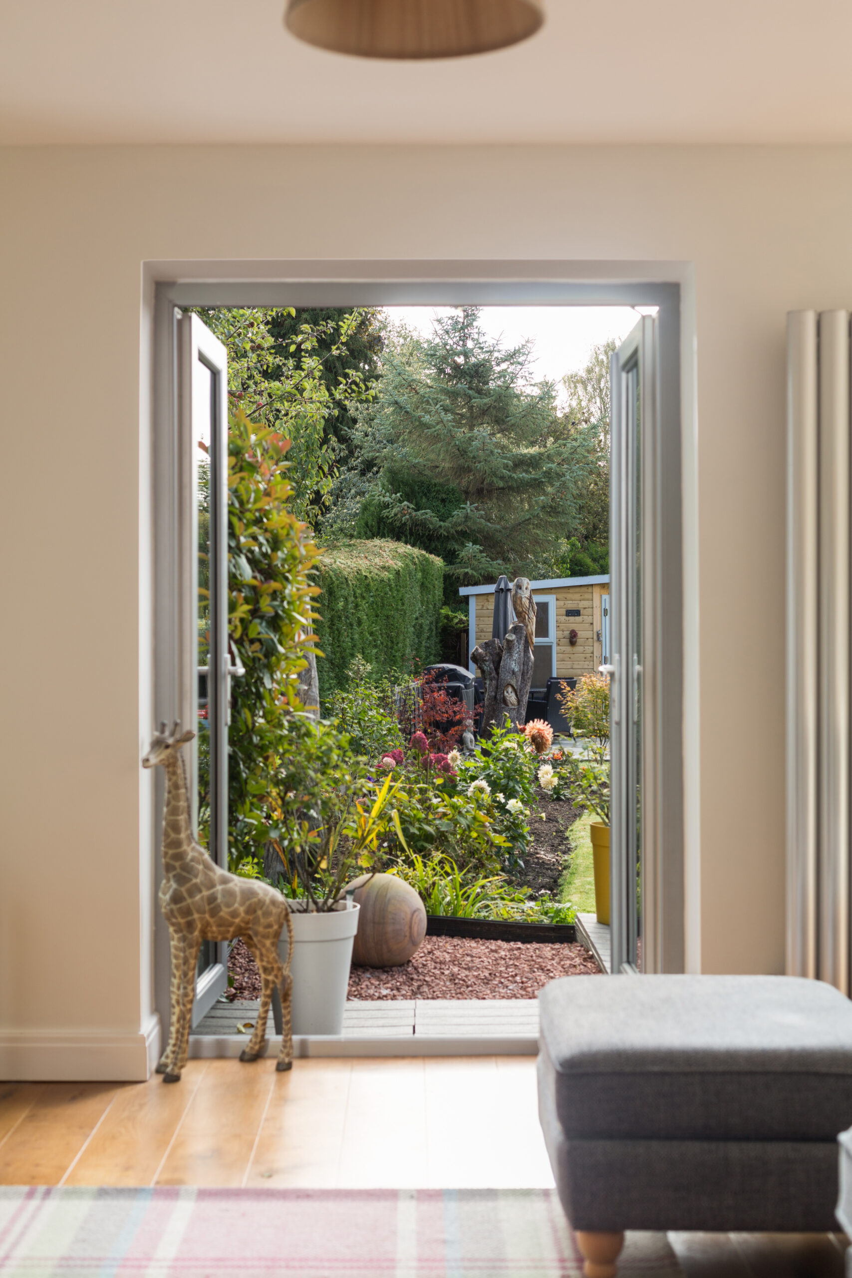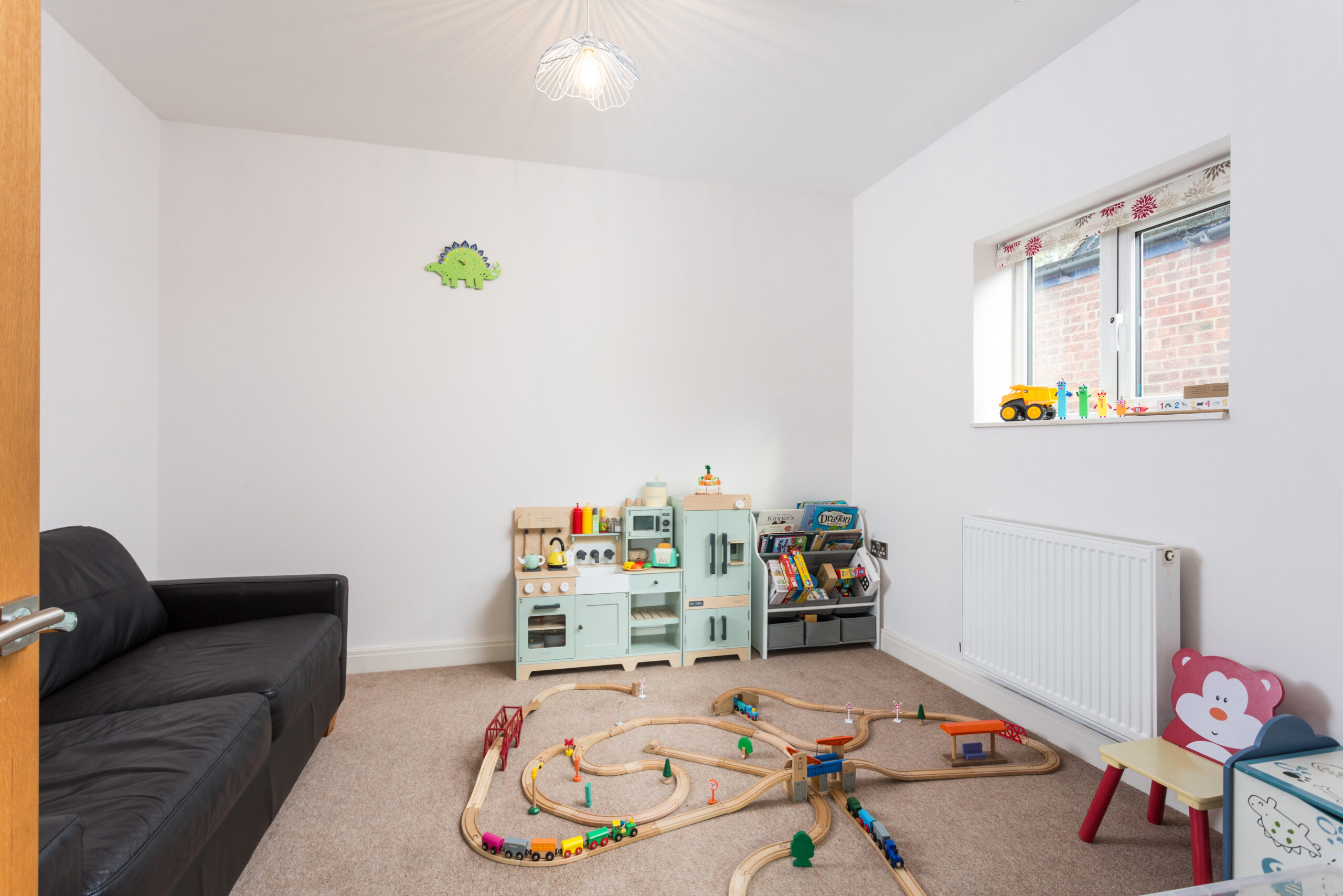To the rear of the house is the extended kitchen / dining / living space offering a sociable and spacious area to entertain. The contemporary kitchen with central island boasts a full complement integrated appliances including twin ovens, grill, hob surface with integrated downdraft extractor, dishwasher, fridge and freezer, with a separate utility room providing provision for washing machine and tumble dryer. A further boot room is accessed from the utility room. The remaining space at the back has ample room for a dining set if desired and lounge furniture with a corner log burning stove offering both a focal point and to heat the room. The Oak flooring and twin French doors either side of bi-folds add to the feeling of quality on display in this fantastic space. A further playroom/ home office completes the ground floor accommodation.